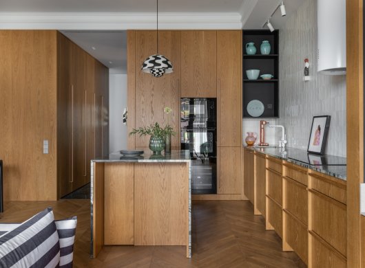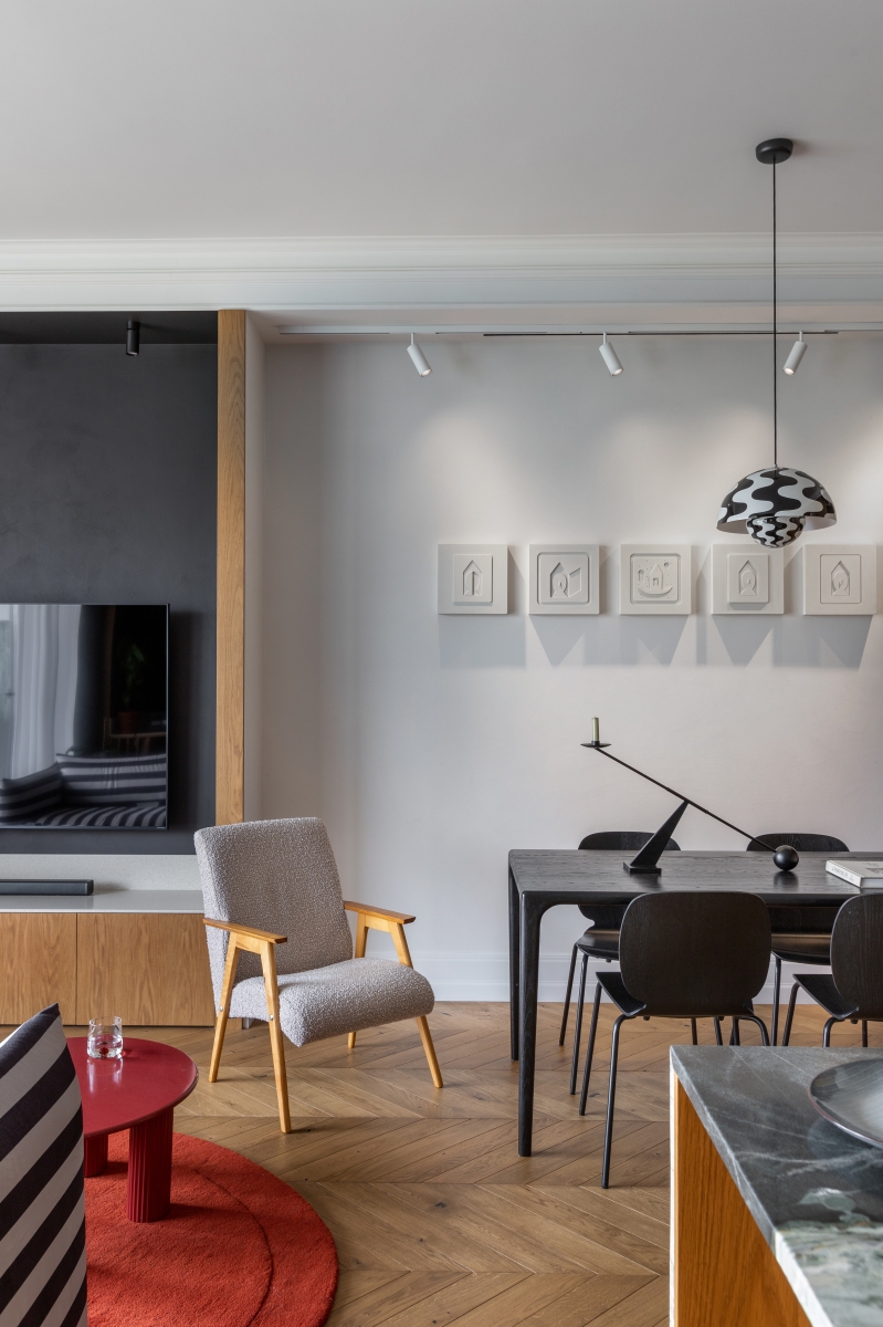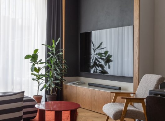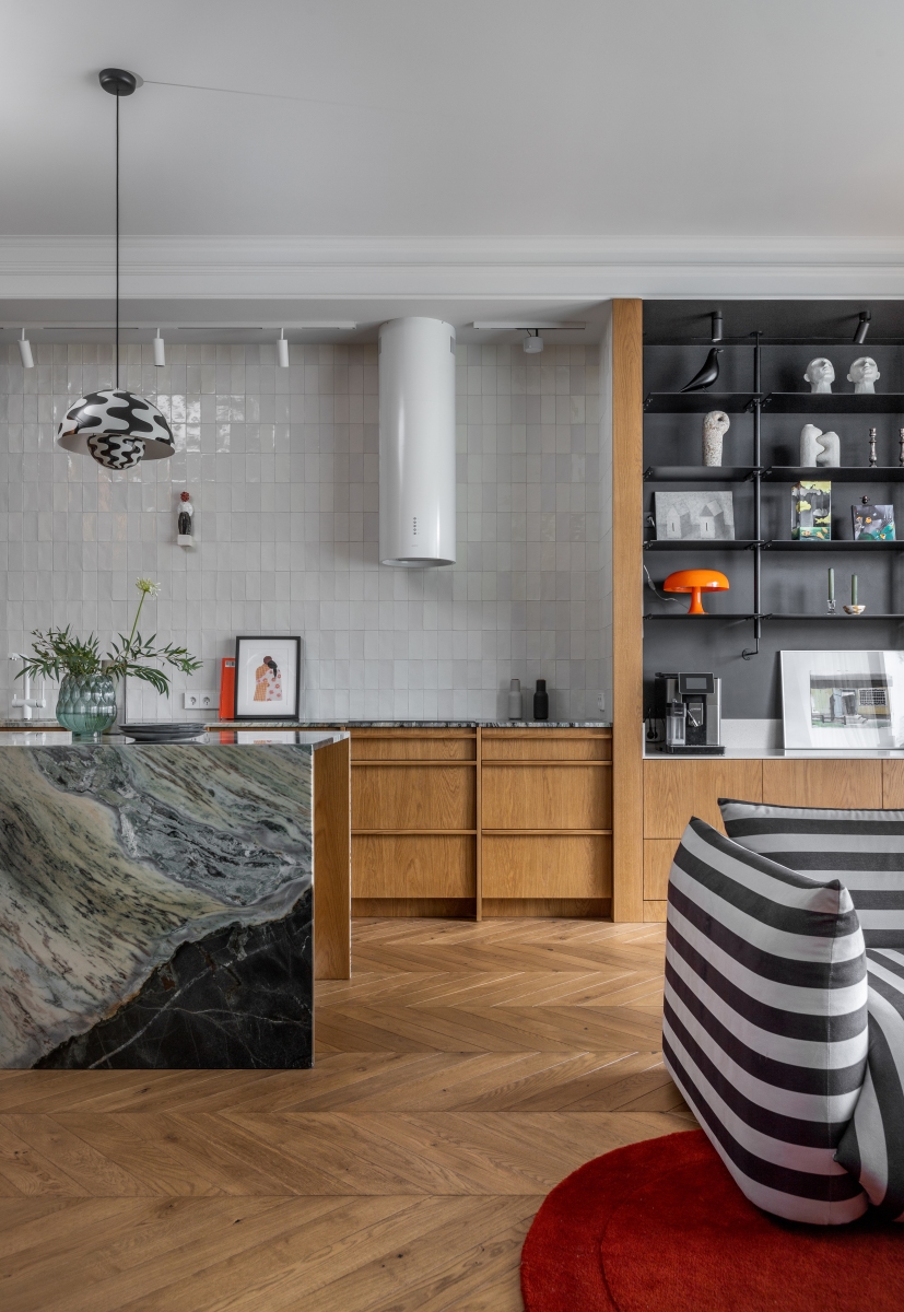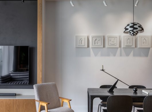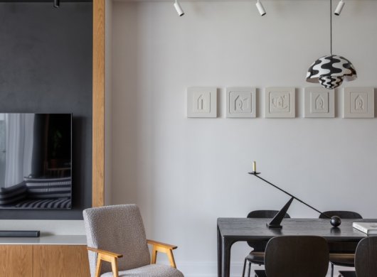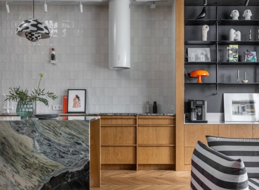 Кухня - гостиная: сердце дома. Место, в котором мы проводим большую часть времени, когда дома. Готовим, ужинаем, смотрим сериалы и мультики, слушаем пластинки, встречаем гостей.»