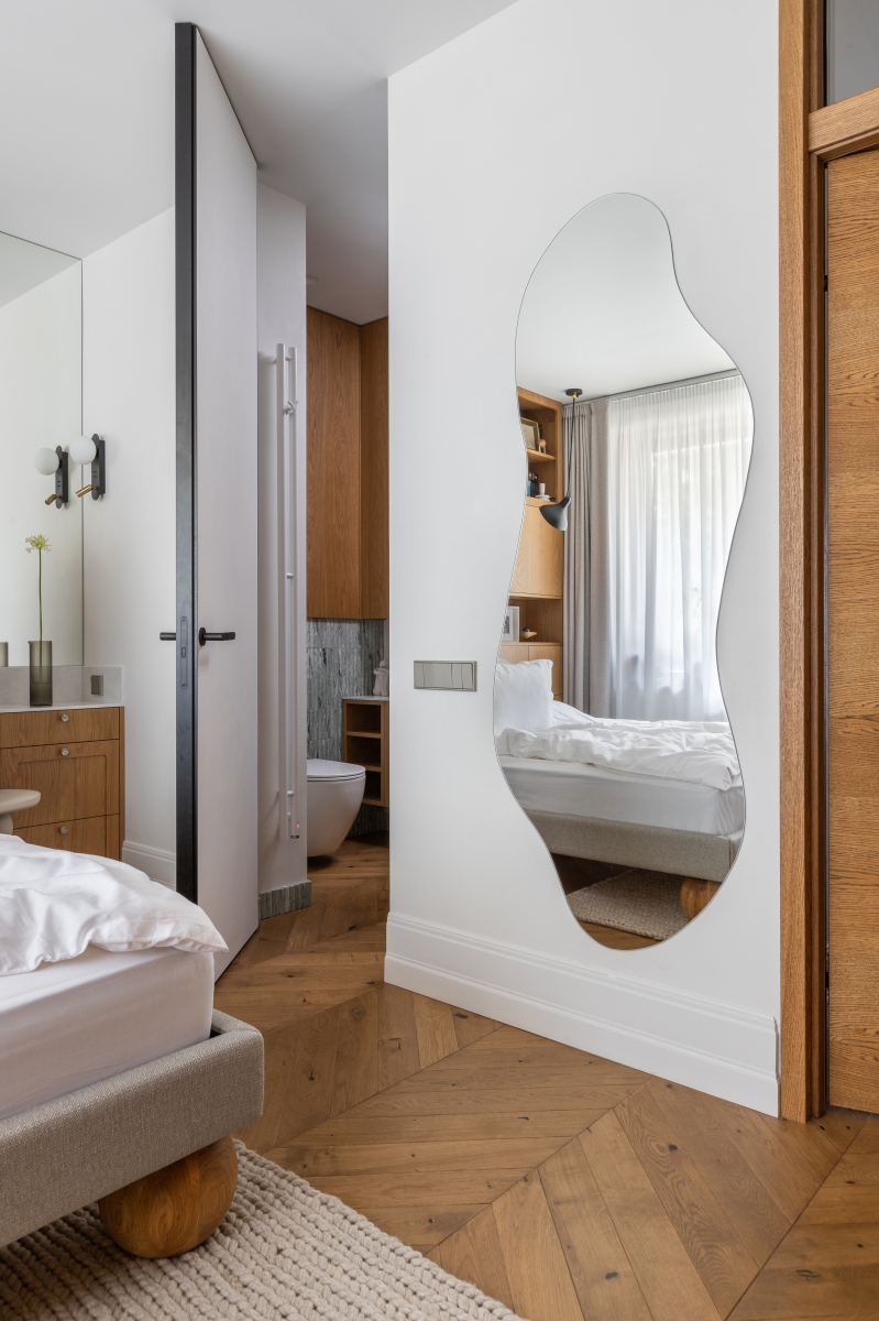 Зеркало от @seletti в прихожей выполняет функцию визуальной точки: когда идешь из гостиной, смотришь ровно на него, оно прекрасно. И особенно дорого моему сердцу: мне его подарили друзья на день рождения.