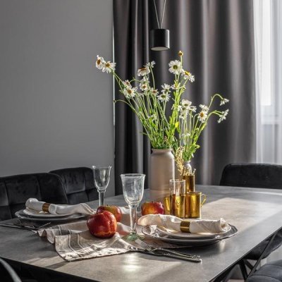 Дополнил интерьер декор в неожиданном этническом стиле, даже слегка рустикальном, создав контраст между сдержанным интеллигентным минимализмом и уютом глиняной посуды.