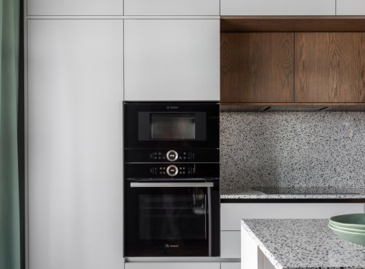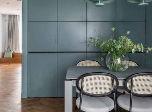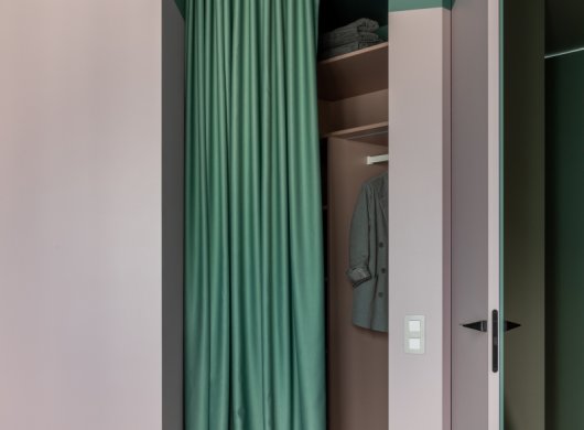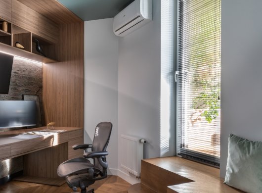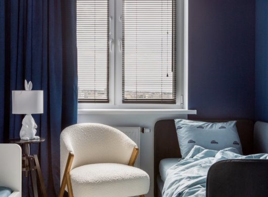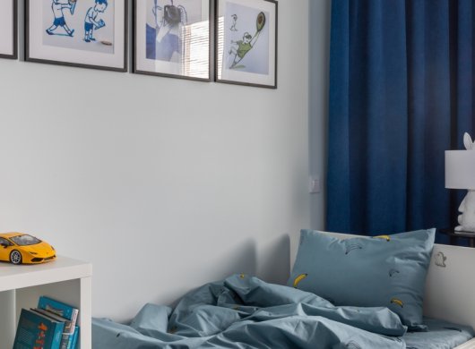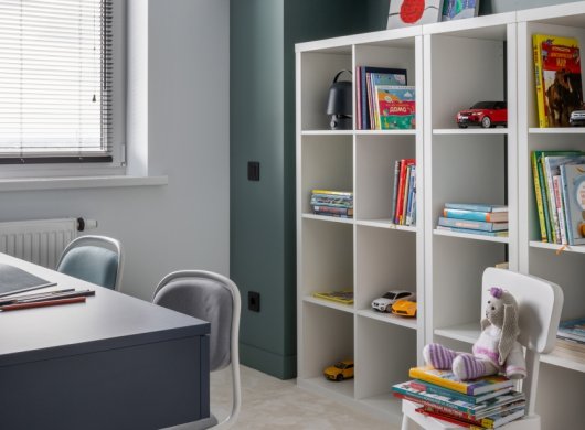 В итоге, благодаря продуманному планировочному решению, нам удалось максимально выровнять геометрию комнат. В квартире у нас поместился небольшой кабинет (заказчик работает дома). Также выделили 2 детские комнаты, которые пока условно делятся на детскую и игровую (у детей маленькая разница в возрасте). В будущем, когда это станет комфортно, дети разъедутся по разным помещениям: все для простой трансформации заложено в интерьере заранее.